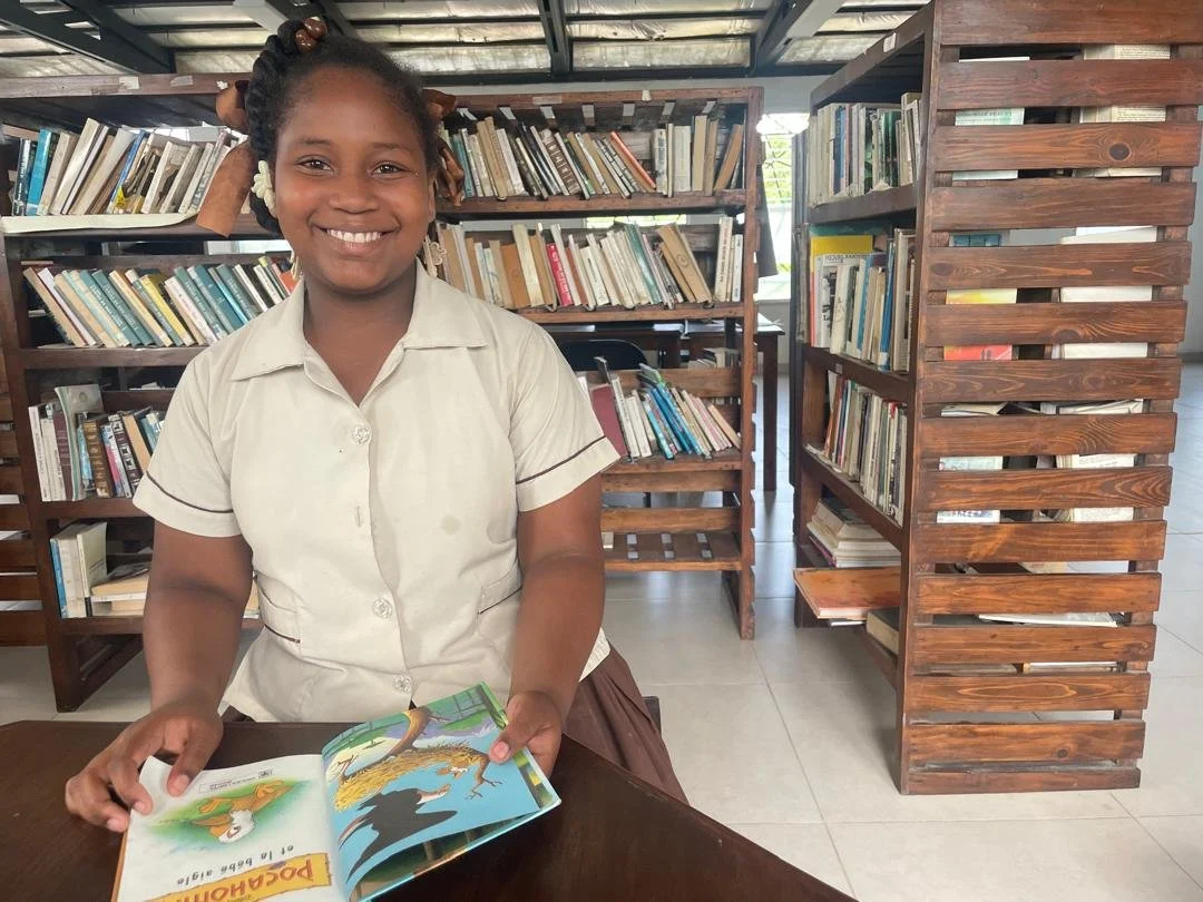 Meet Adlaica, a bright 12-year-old student in the 7th grade who has practically grown up inside our community library in rural Haiti.